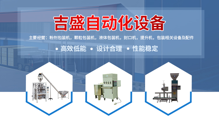 鄭州吉盛自動(dòng)化設(shè)備有限公司主要經(jīng)營(yíng):粉劑包裝機(jī),顆粒包裝機(jī),液體包裝機(jī),封口機(jī),提升機(jī),包裝相關(guān)設(shè)備及配件。